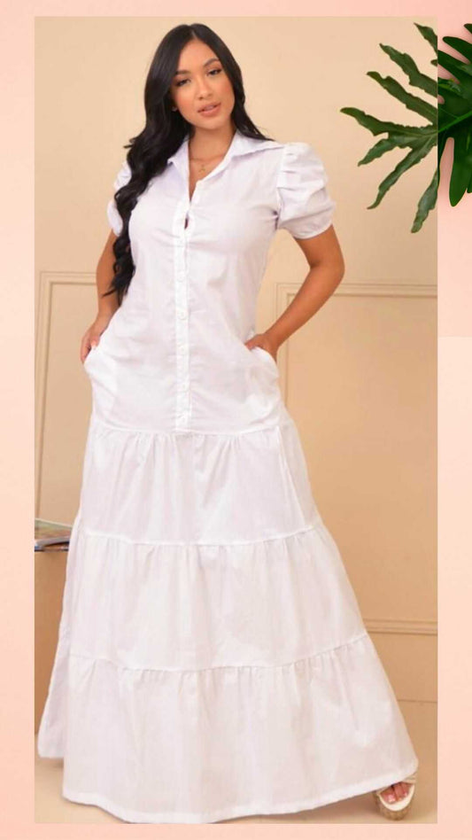 Vestido Largo Blanco en ALGODON-SUAVE-Ref 1053